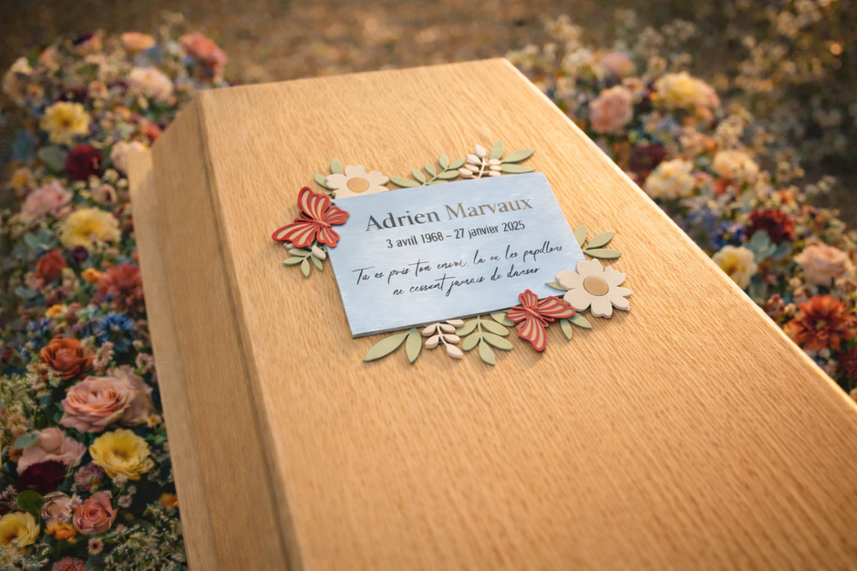 À la fois plaques d’identification de cercueil et plaques adhésives destinées aux stèles ou aux columbariums, elles offrent une approche nouvelle du geste mémoriel.